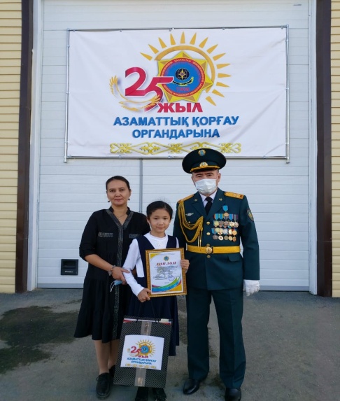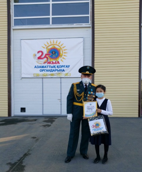 Азаматтық қорғау органдарының 25-жылдығына орай жалпы білім беретін мектептердің  5-8 сынып оқушылары арасында ұйымдастырылған “Мен болашақ құтқарушымын” сурет байқауында мектебіміздің 5-сынып оқушысы Абилхан Камилла жүлделі I орынды иеленді.