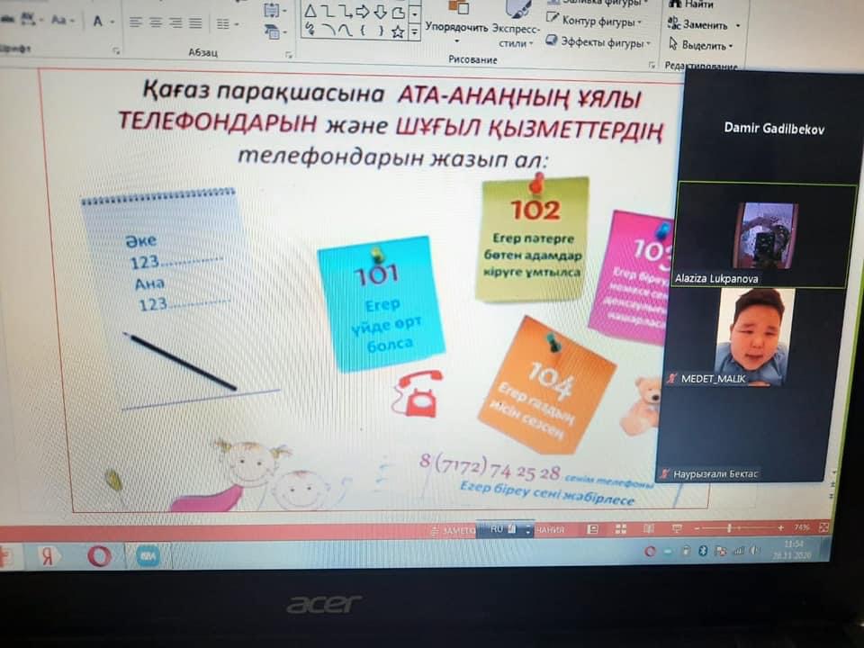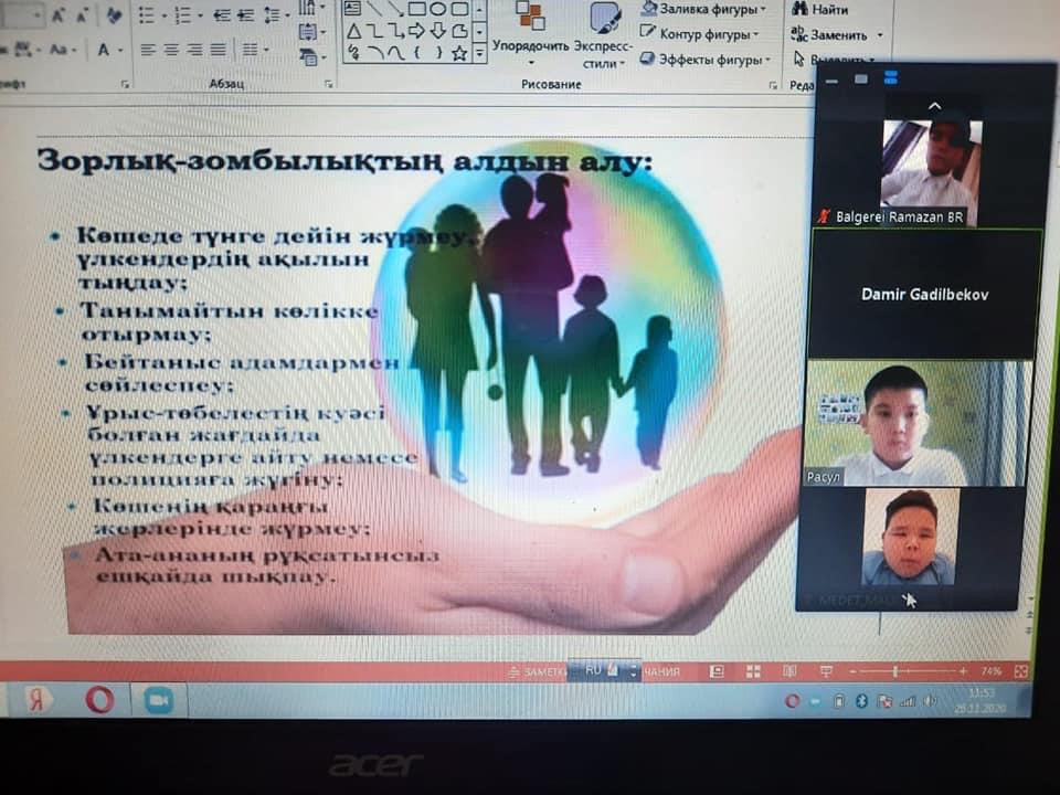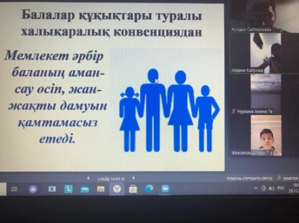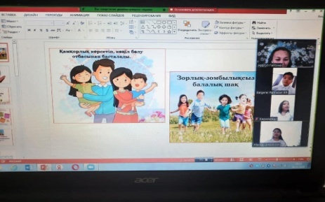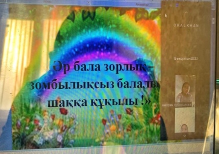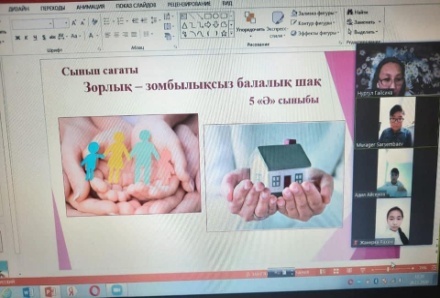 25 қараша -10 желтоқсан аралығында “Зорлық – зомбылықсыз балалық шақ” акциясы аясында  “Зорлық -зомбылықсыз балалық шақ” тақырыбында сынып сағаттары өткізілді. Оқушылар аталған тақырып аясында өз ойларымен бөлісті. Салған суреттерін ұсынды.